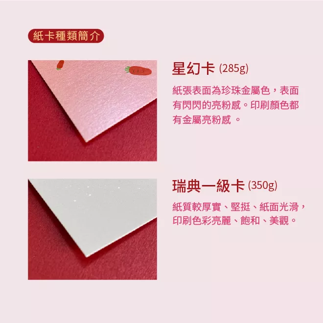 ★卡片紙類有星幻卡(285g)、瑞典一級卡(350g)可選擇。
