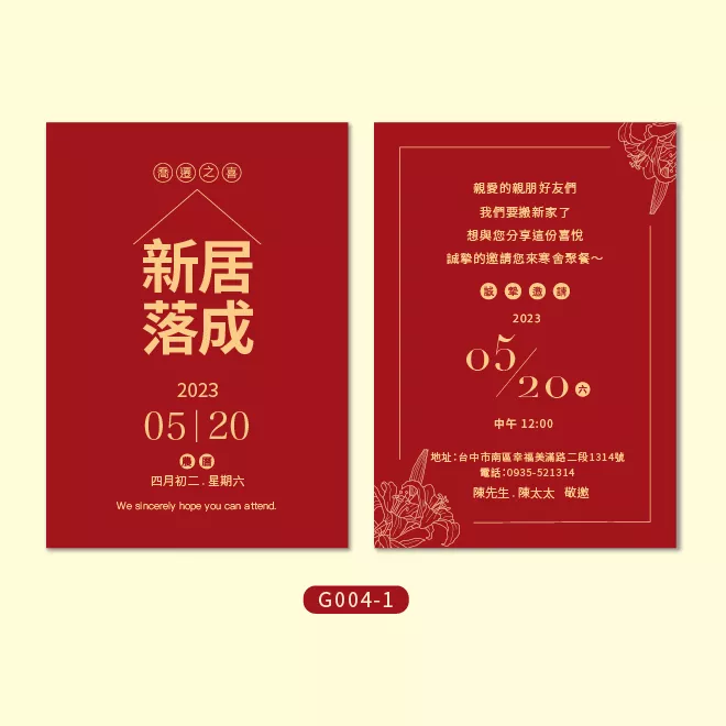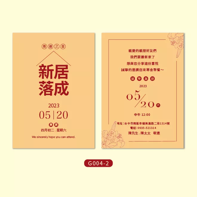 《一禾森設計G004》客製入厝邀請卡印製・新居落成入厝明信片邀請卡印刷