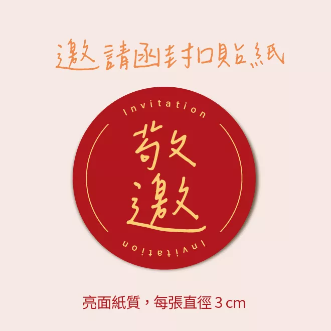 ★套組含250g厚磅珠光信封(16x11cm),邀請圓形貼紙。